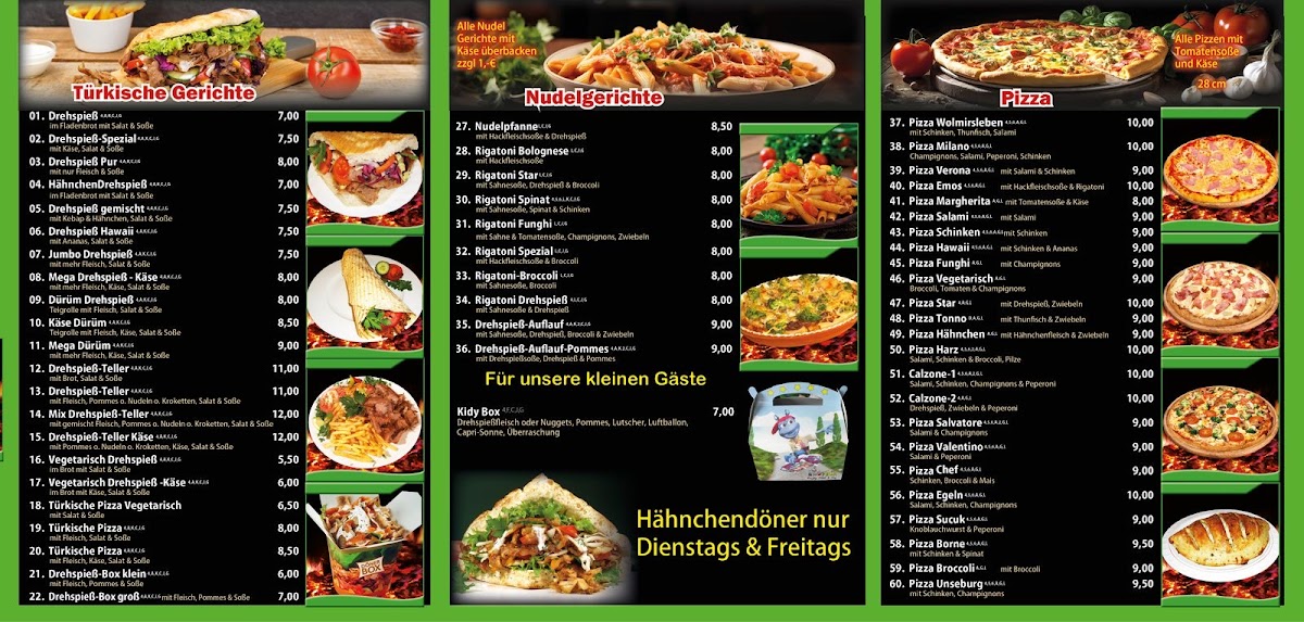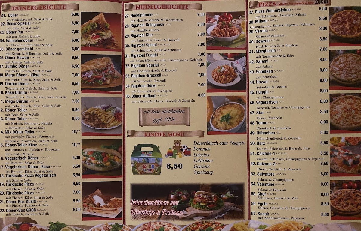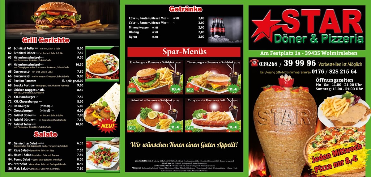 Star Döner & Pizzeria Wolmirsleben offers a vibrant menu that perfectly blends traditional Turkish fast food with classic Italian pizza delights. Located in the heart of Wolmirsleben, this eatery is renowned for its fresh ingredients and generous portions, especially the Döner kebabs bursting with tender, flavorful meat. Their Türkische Pizza stands out as a local favorite, praised for its authentic taste and crisp crust. Beyond these highlights, the menu also features a variety of well-prepared pasta dishes and classic pizzas, delivering consistently satisfying flavors. The staff’s friendly and efficient service ensures that despite busy lunch hours, orders are ready on time, especially if called ahead. While prices have seen some adjustments, the quality and quantity of food justify the cost. Overall, the menu at Star Döner & Pizzeria Wolmirsleben invites you to enjoy a harmonious fusion of Turkish and Italian fast food traditions, leaving a memorable and comforting dining experience.